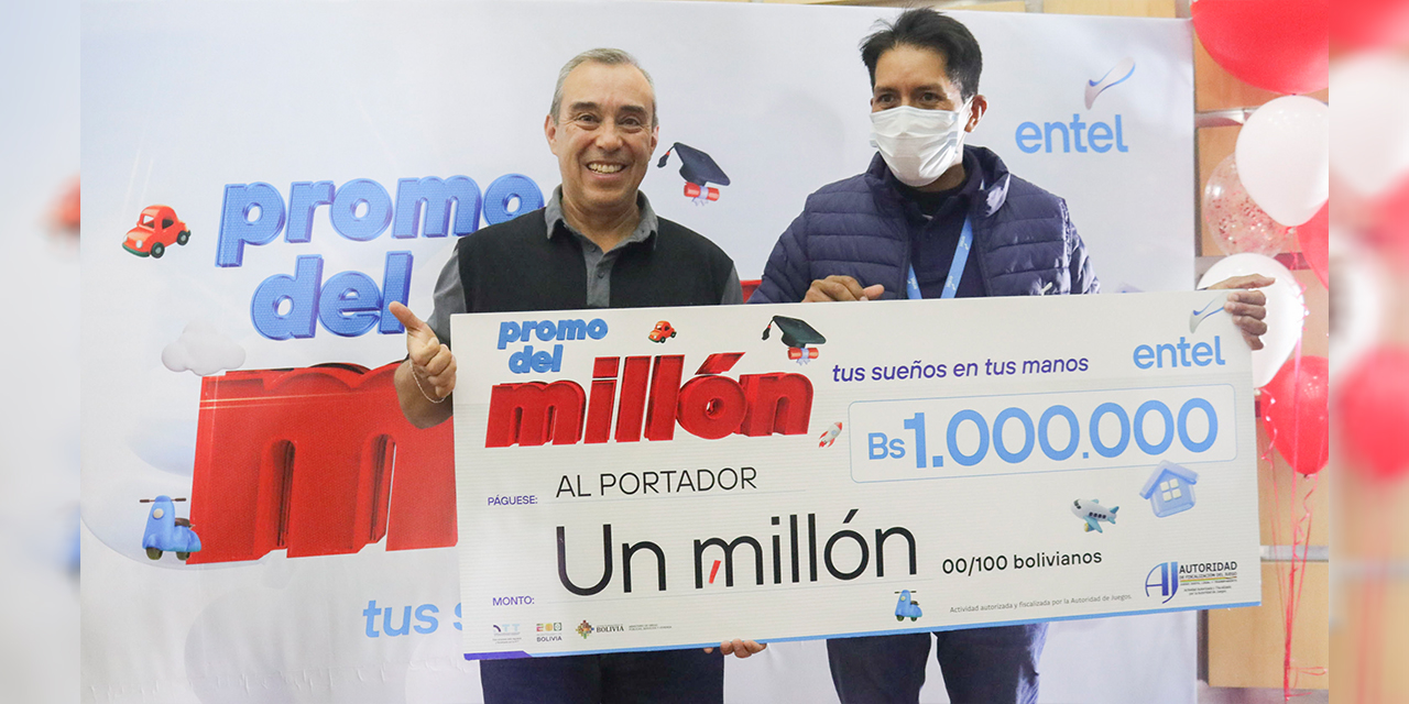 Con una fiesta de sorpresas y emociones, el agricultor paceño Ramiro Cuentas recibió el premio de la ‘Promo del Millón’ de la Empresa Nacional de Telecomunicaciones (Entel), que consiste en Bs 1 millón, sorteados la semana pasada entre miles de usuarios de todo el país.