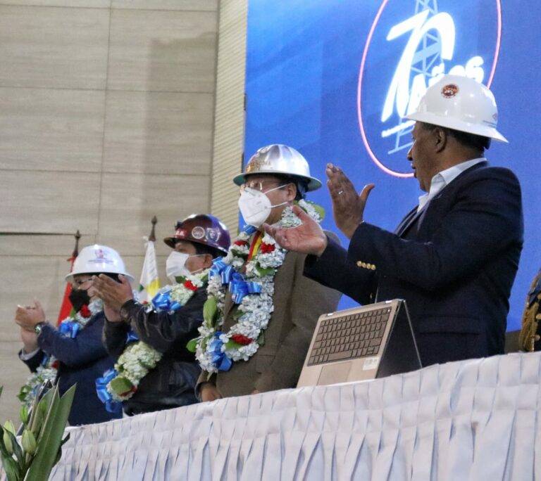 “Hoy el país demanda que los petroleros empiecen a cooperar con otras instituciones del Estado para dar un salto cualitativo en la gestión de Yacimientos de Litios Bolivianos, con la vasta experiencia que tienen en yacimientos y energía”, señaló Arce en el acto por los 70 años de la Federación Sindical de Trabajadores Petroleros.