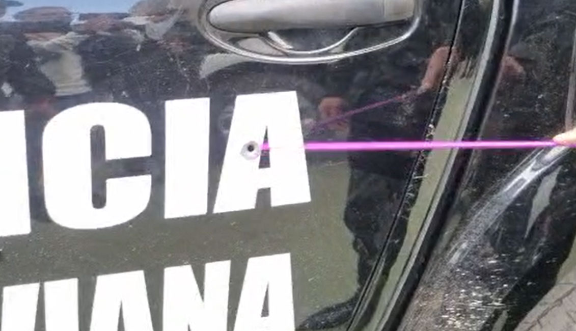 Denunció que cinco vehículos de la entidad del orden fueron afectados por los proyectiles. Mostró impactos de bala que perforaron los laterales de las camionetas policiales.