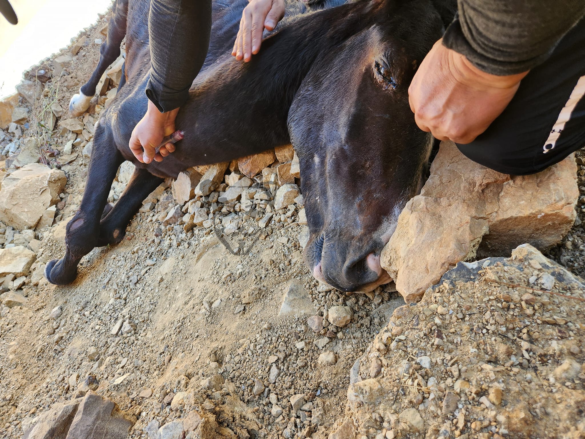 Tristemente, una yegua perdió la vida en el accidente, mientras que un caballo negro gravemente herido tuvo que ser sacrificado debido a la gravedad de sus lesiones. Otros animales también resultaron heridos, incluido un caballito con el cuello roto, al que se le pudo brindar tratamiento inmediato gracias a la intervención del veterinario, logrando que comenzara a mover la articulación casi de inmediato. Se brindó asistencia adicional al burrito y a los demás caballos heridos.