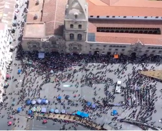 Este lunes coincidieron grupos de cocaleros y gremiales, liderados por dirigentes vinculados al gobernador Luis Fernando Camacho y al cívico Rómulo Calvo, en la plaza de San Francisco. La convocatoria no llenó ni la bandeja inferior de la plaza Mayor de San Francisco.