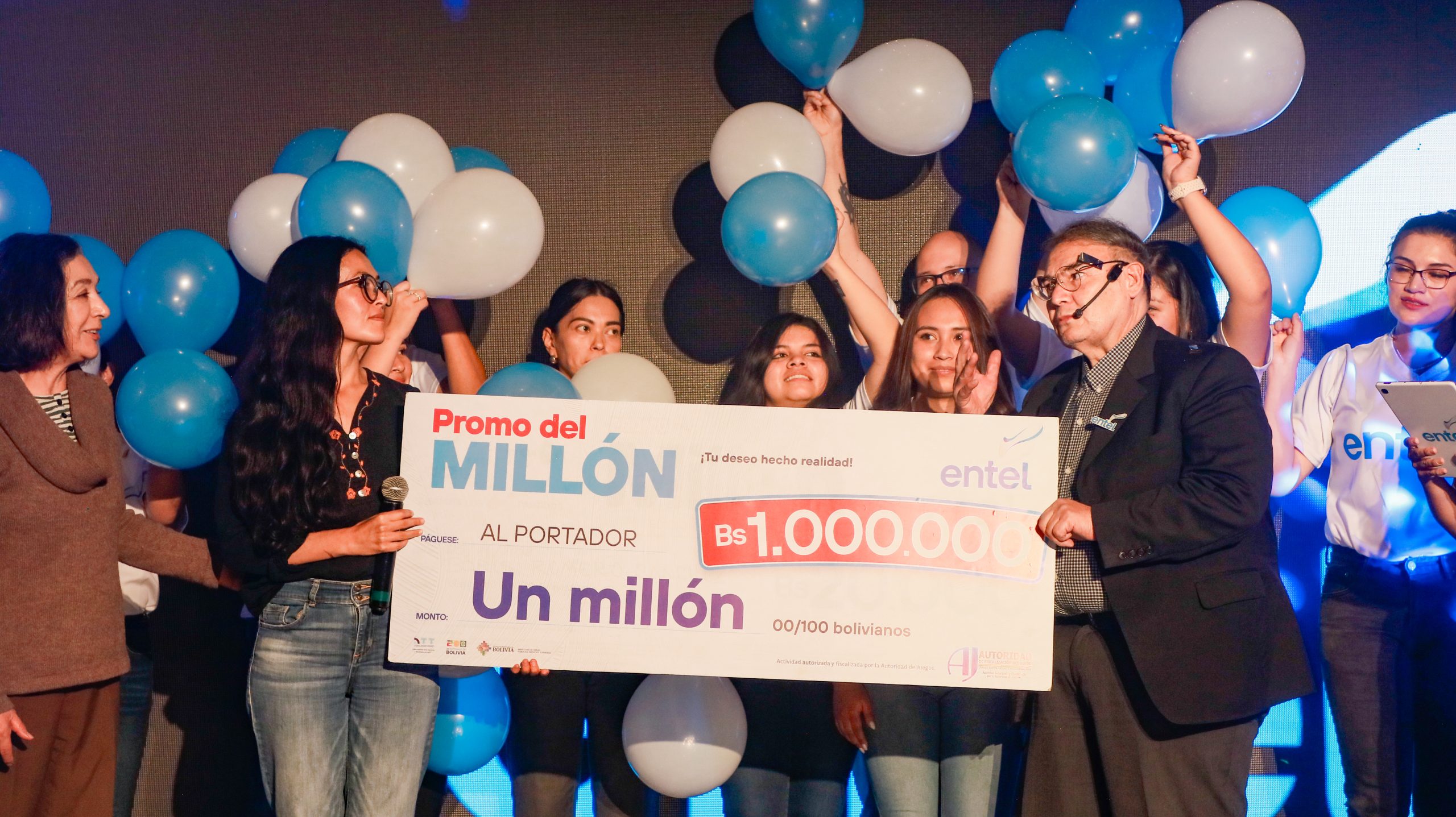 En medio de alegría y sorpresa, María Fernanda, una joven boliviana residente en Yotala, Chuquisaca, recibió el premio de la “Promo del Millón” de la Empresa Nacional de Telecomunicaciones, que consiste en la entrega de un millón de bolivianos sorteados entre los usuarios participantes en todo el país.