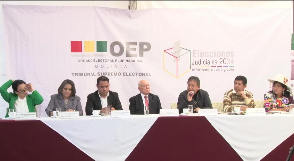 La reunión convocada por el Tribunal Supremo Electoral (TSE), del que participaron representantes de los partidos políticos y alianzas con personería jurídica, determinó 7 acciones para garantizar las elecciones judiciales, entre ellas, descartó una ley corta planteada por el tribunal que buscaba blindar el proceso y ratificó la ley transitoria 1549.