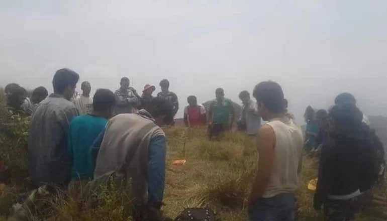 Los pobladores de la comunidad, se reunieron y determinaron que subirían al cerro para orar por agua al Señor. Desde primeras horas los comunarios subieron a una colina para pedir el líquido elemento. || Red Uno.