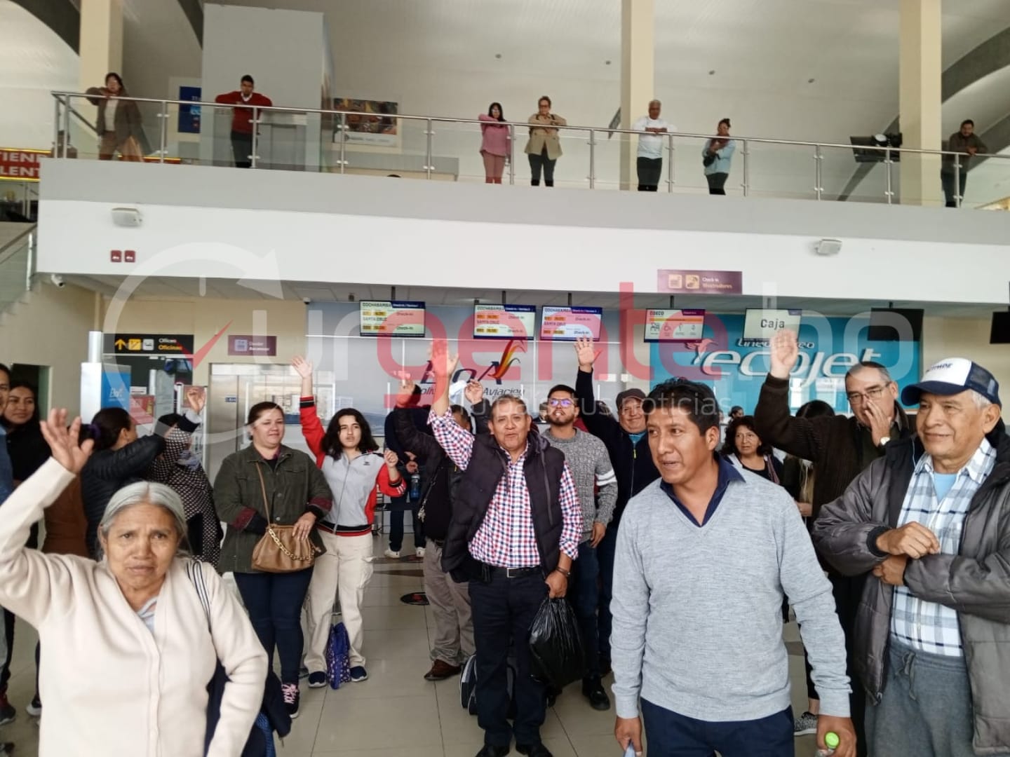 “Estoy en el aeropuerto de Sucre y no hay vuelos. Somos cientos de pasajeros, está lleno el aeropuerto”, dijo De La Cruz a Urgente.bo.