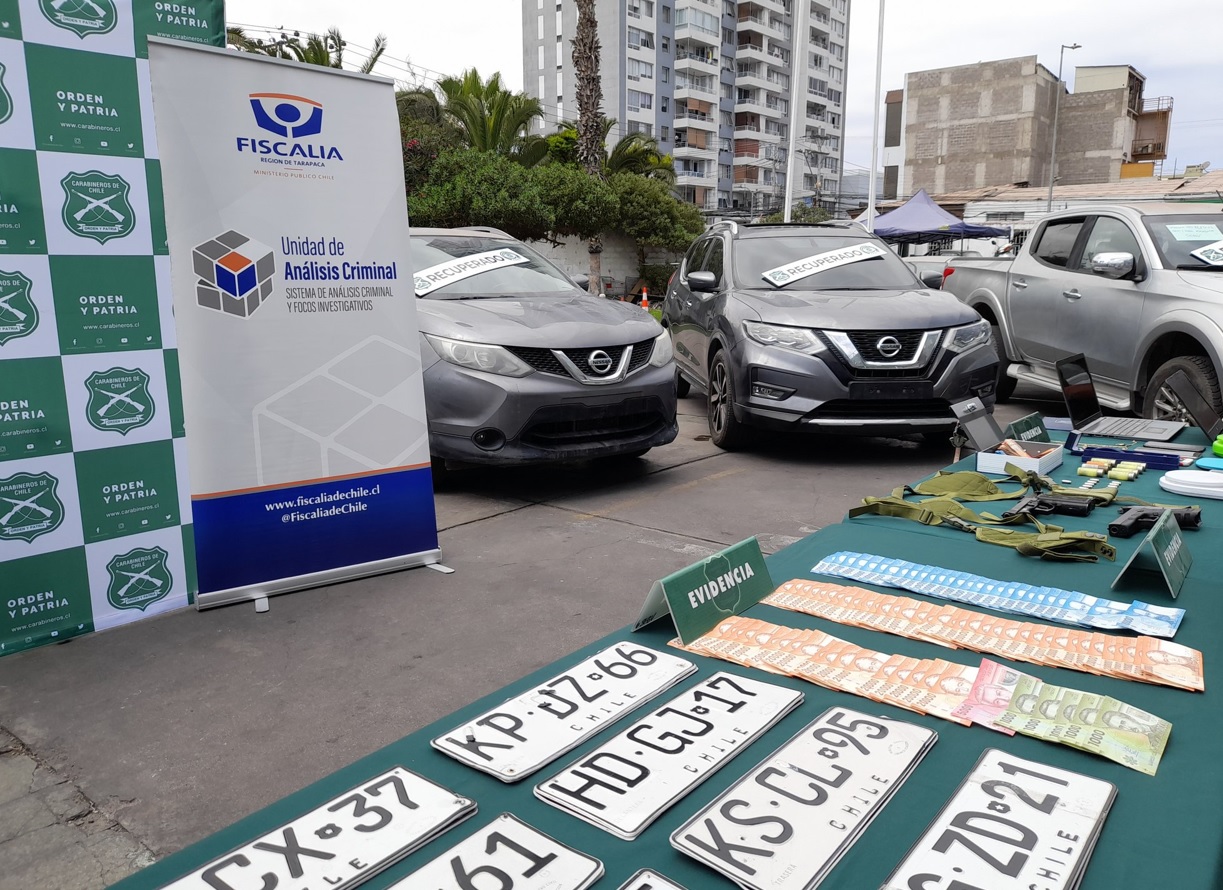 La Unidad de Análisis Criminal y Focos Investigativos de la Fiscalía de Tarapacá junto a la Sección de Encargo y Búsqueda de Vehículos (SEBV) de Carabineros realizaron los operativos simultáneos de Iquique, Alto Hospicio, Arica y Santiago.