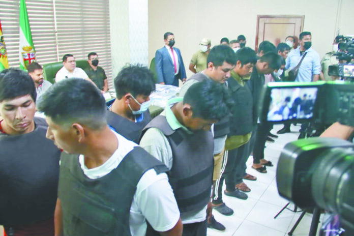 La jueza Erika Barrancos determinó ayer enviar a la cárcel de Palmasola, por 120 días, a las 13 personas aprehendidas por presuntos daños ambientales durante el avasallamiento de un predio acuífero en el sector Lomas de Arena, en Santa Cruz.