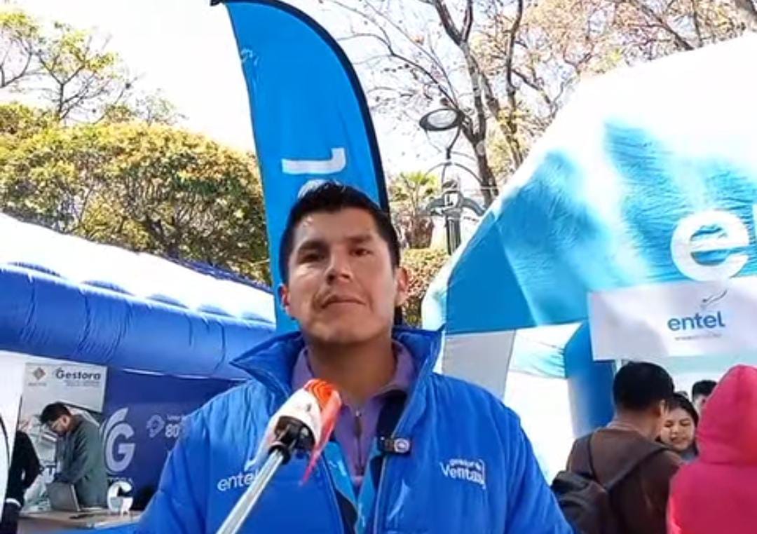 “Estamos como Entel apostados en la plaza 25 de Mayo frente a nuestra gloriosa Casa de la Libertad para ofertar toda la variedad de productos y servicios que tenemos, de total accesibilidad para el público en general”, señaló Andrade.