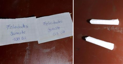 Luego el sujeto invitó a la víctima a volver a participar y le ofreció tomar otro papel doblado donde esta vez se ganó Bs. 100. Perpleja, la víctima se preguntó dónde puede reclamar, sin embargo, el sujeto le señaló que los premios son al instante, sacó un fajo gordo de dinero y le pidió su Cédula de Identidad supuestamente para registrarla. No obstante en ese punto, ya sospechando de una treta, la víctima simplemente se negó a entregar sus documentos y se fue.