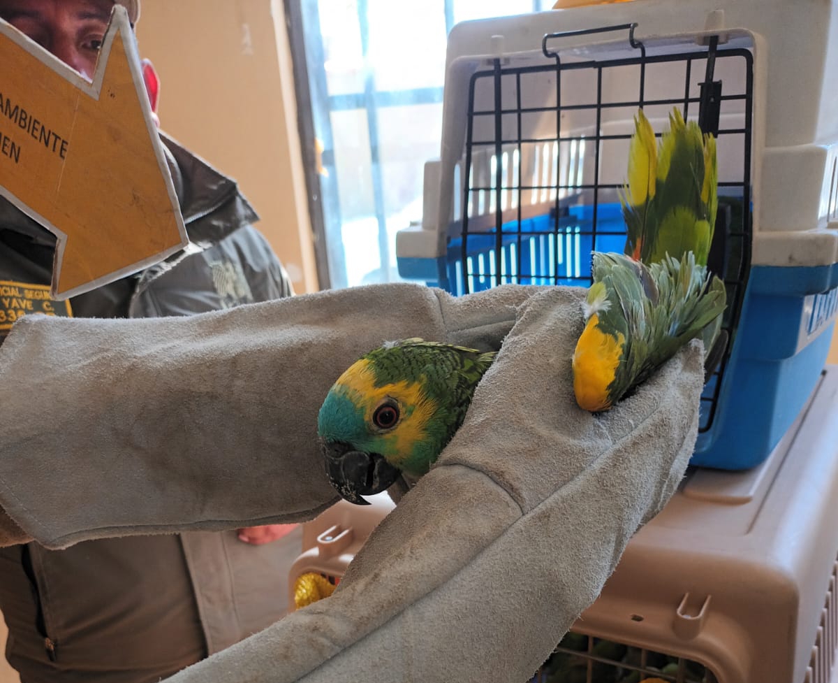 El ciudadano portaba tres yutes, en uno se encontró un loro mediano de color verde y 22 pequeños, en el segundo 19 loros pequeños y en el tercero un loro grande de color verde combinado con celeste.