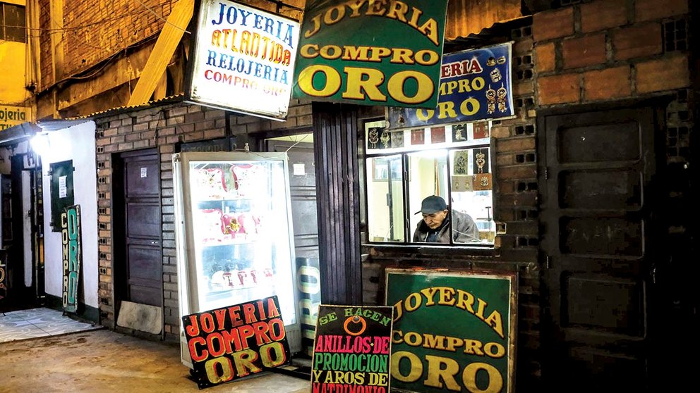 La calle Tarapacá está cerca del centro de la ciudad de La Paz, en una zona comercial donde los puestos de venta invaden las aceras y donde los vehículos atascados en el tráfico deben sortear a los peatones que buscan una forma de avanzar. Pero la Tarapacá tiene sus particularidades. Las aceras no están atiborradas de comerciantes, excepto por algunos puntos de la vereda donde hay puestos de venta de pollo crudo. Es una de las calles mejor vigiladas en toda la ciudad, con cámaras instaladas a cada paso, y es donde hay más oro y mercurio a la vista.
