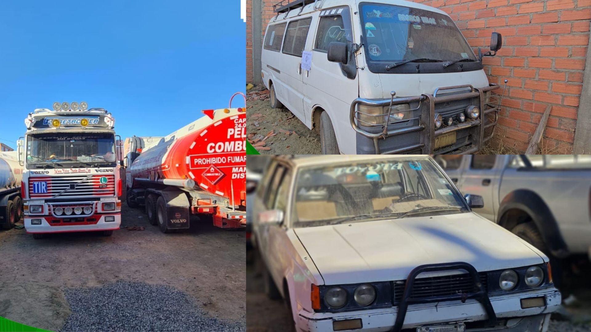 Un volvo en el cual se cargaba hasta 1.500 litros de combustibles con repetitividad, un minibús con 800 litros y un camión con 1.000 litros. “Estaban realizando también un carguío excesivo», informó Jiménez.