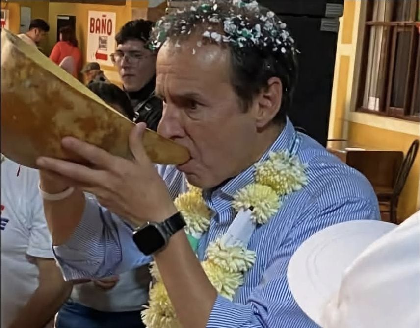 En el mismo, se refiere al precandidato a la presidencia y expresidente Jorge Tuto Quiroga, a quien según dice le enseña a tomar la bebida característica de Tarata – Cochabamba.
