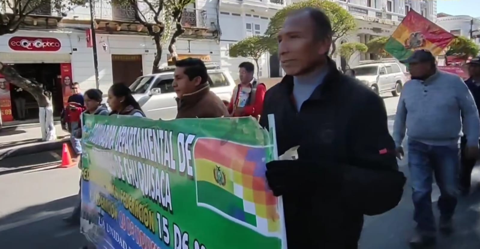 Sucre, 17 de julio (ANV). – La Coordinadora Departamental de Gremiales de Chuquisaca llevó a cabo una marcha en la plaza 25 de Mayo, exigiendo el reconocimiento de sus representantes por parte de las autoridades y rechazando lo que consideran «atropellos» por parte de la Intendencia. Los manifestantes provenientes de cuatro federaciones piden un trato justo y coordinado con las autoridades municipales y departamentales.