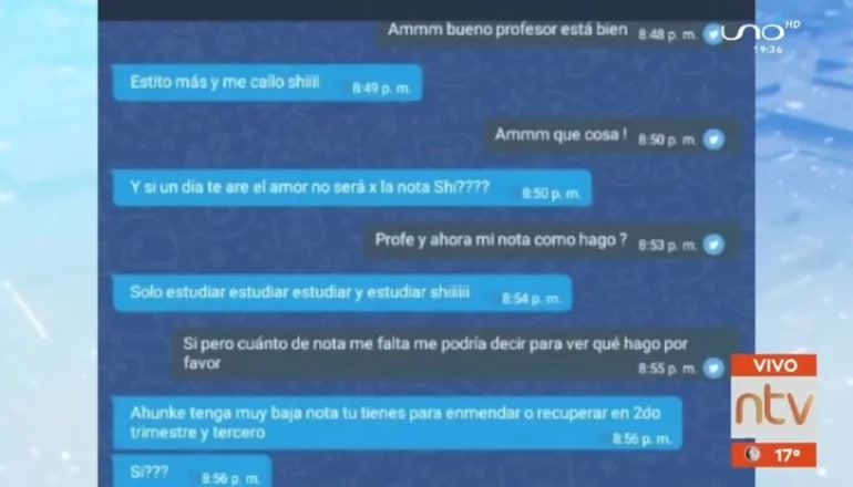 «Cuando empezamos a revisar el celular de mi hija, vemos que el profesor le está pidiendo, a cambio de notas, tener relaciones sexuales con mi hija. Mi hija tiene el cuaderno de esa materia que pasa con él todo sellado«, denunció la madre de la víctima.