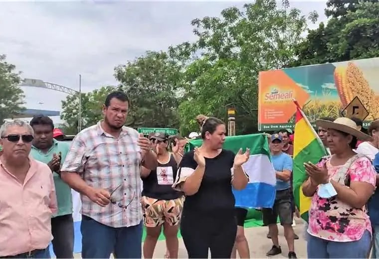 Tras el pronunciamiento ante algunos pobladores, éstos vitorearon apoyando el pedido:de renuncia del alcalde Chambi, mientras continúa el bloqueo y el paro, en el Puente de la Amistad en Arroyo Concepción.
