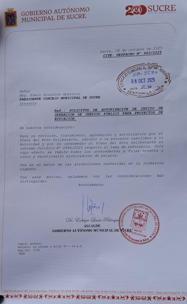 Sucre, 8 de octubre de 2025 — El Director Municipal de Educación, Miguel Ángel Calvimontes, lamentó el perjuicio generado por el Concejo Municipal de Sucre, luego de que este rechazara un crédito destinado a la reparación y mejoramiento de la infraestructura educativa del distrito. La decisión ha forzado la presentación de un nuevo paquete crediticio, retrasando la solución a los daños en numerosas unidades.