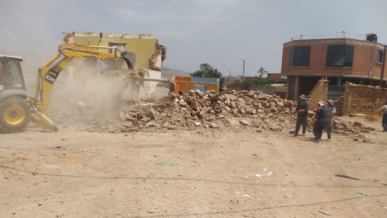 Sucre, 9 de octubre (ANV).- Ayer, la Dirección de Planificación Territorial y Movilidad Urbana, a través de su personal de la Jefatura de Control y Desarrollo Municipal, llevó a cabo la demolición de una vivienda construida ilegalmente en un predio municipal avasallado. El inmueble estaba ubicado en la vía pública, dentro de la junta vecinal Juana Azurduy, en la zona Tucsupaya Alta del Distrito Tres (D-3). Con esta acción, se logró recuperar aproximadamente ochocientos metros cuadrados de terreno municipal.