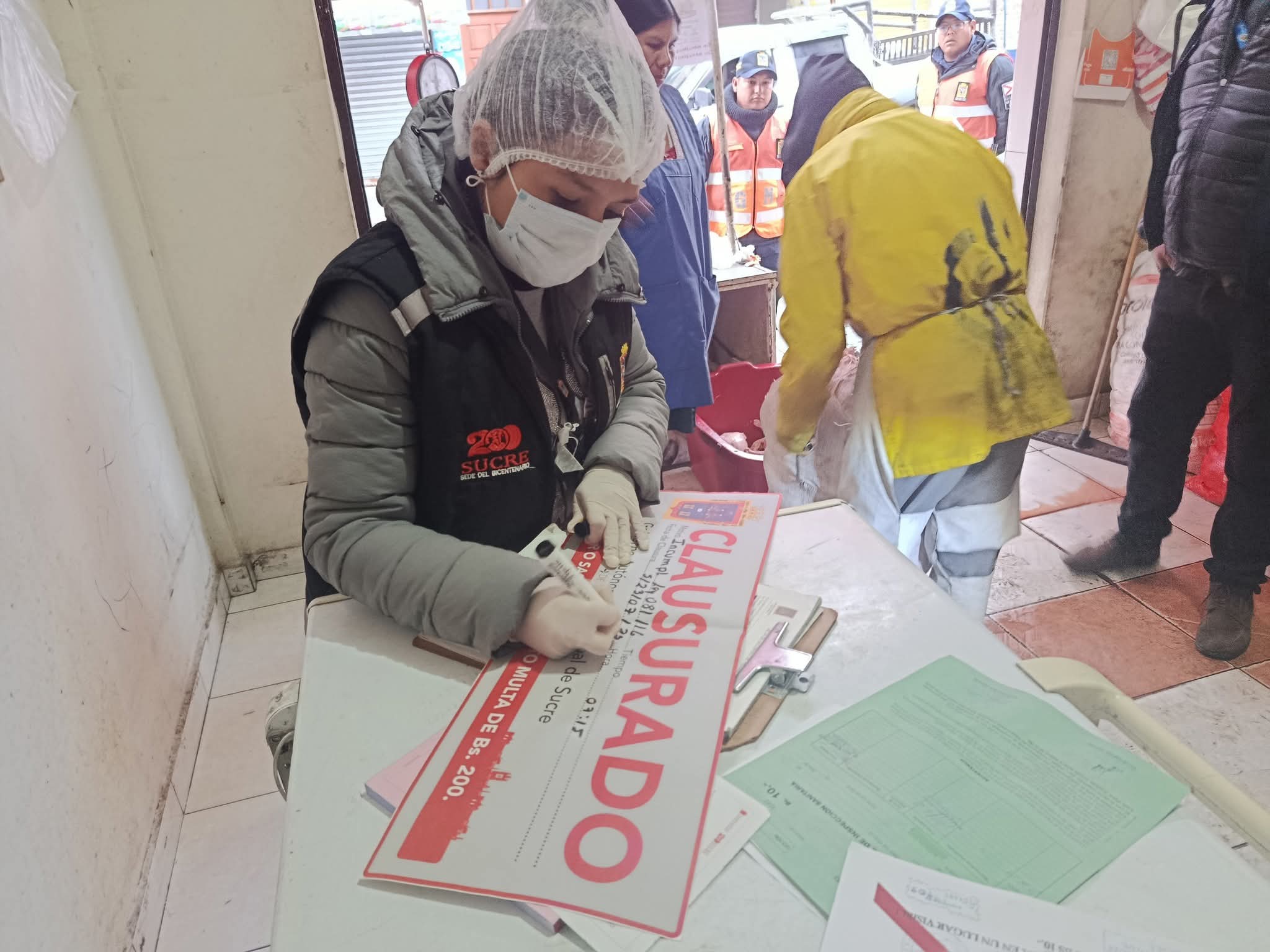 Sucre, 23 de julio (ANV).- La Alcaldía de Sucre, a través de la Intendencia Municipal, ejecutó este martes un operativo de control en la zona del Mercado Campesino, en coordinación con el SENASAG y el Viceministerio de Defensa de los Derechos del Usuario y Consumidor, que concluyó con la clausura de cuatro puestos de venta de pollo por condiciones insalubres.